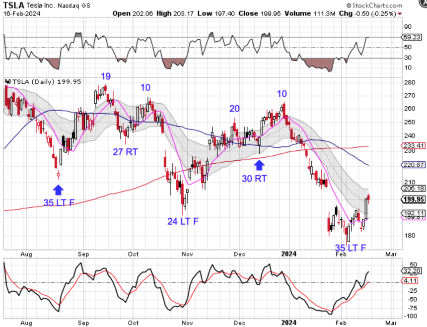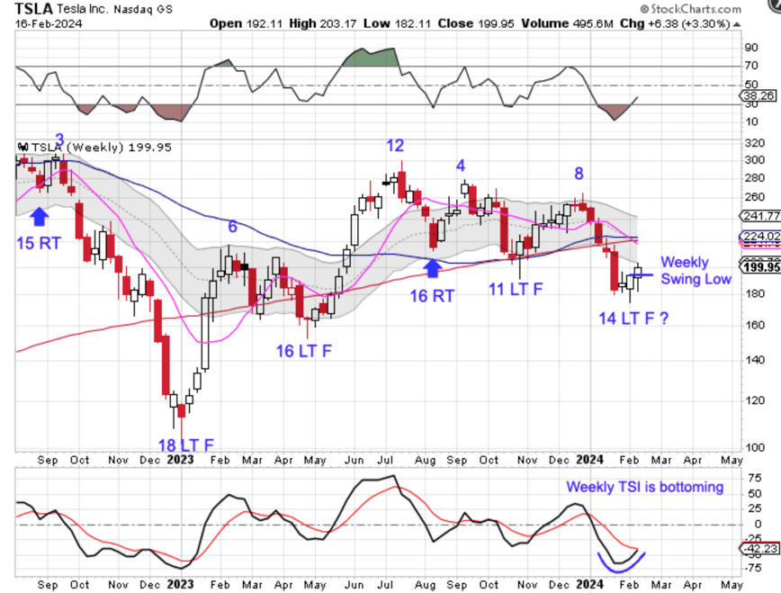 - Tesla is in its timing band for an ICL and formed a weekly swing low.