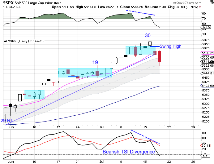 Stocks formed a swing high on Wednesday and delivered bearish follow through on Thursday.