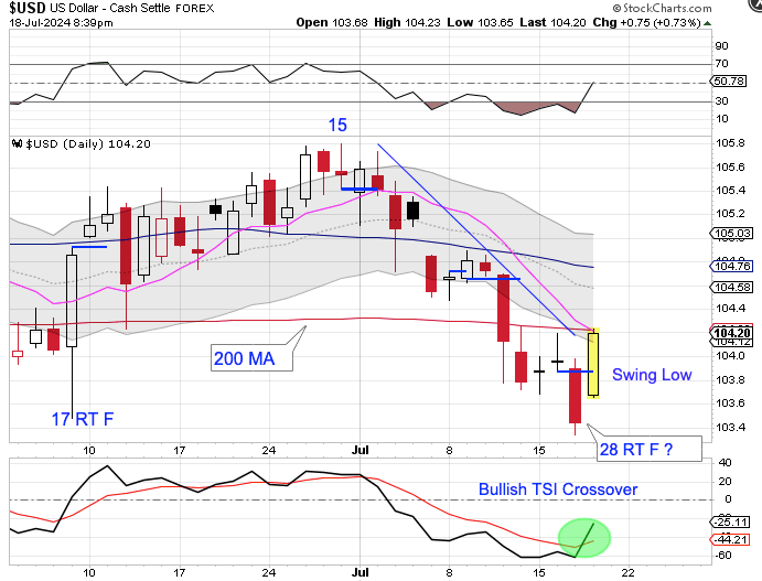 The dollar formed a swing low on Thursday.