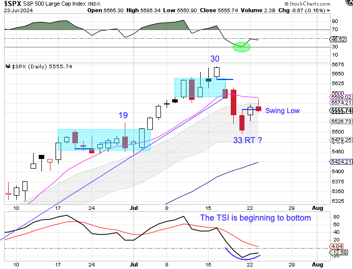 Stocks are currently in a daily uptrend. While stocks formed a swing low on Monday, we are waiting on a close above the 10 day MA to indicate a continuation of their daily uptrend and signal a cycle band buy signal — in which we will then label day 33 as the DCL.