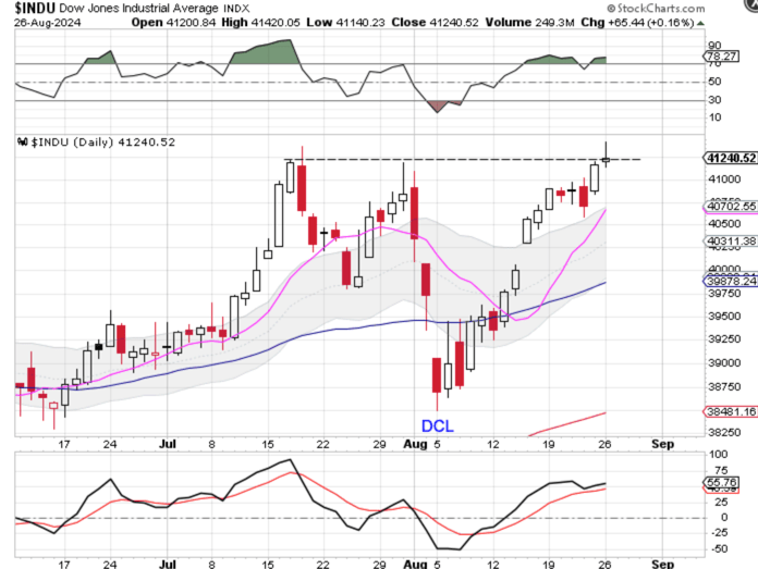 The Dow Jones made a new all-time high on Monday, but is still negotiating its resistance level.