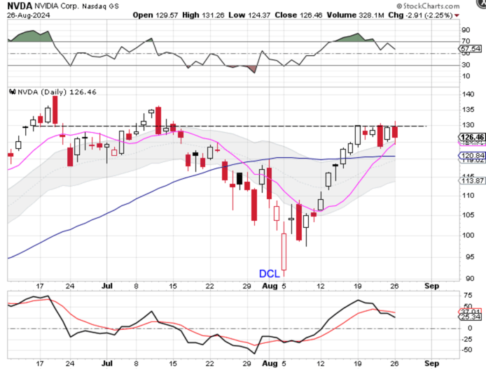 Nvidia is trading just below the 130 resistance level. A positive earnings result will send Nvidia higher and carry the market with it.