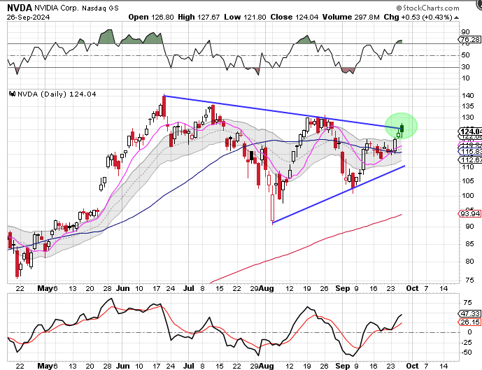Nvidia tested the upper stem of its triangle consolidation pattern on Thursday.