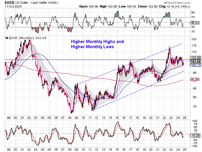 Over the past 17 years, the dollar has been making a series of higher monthly highs and higher monthly lows.