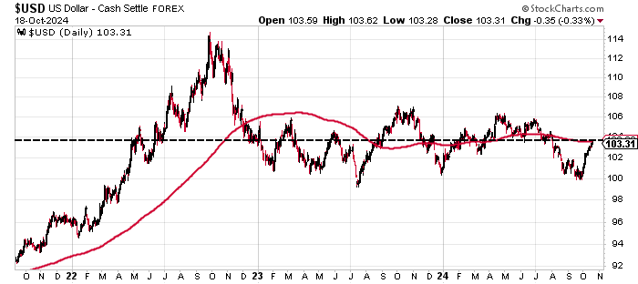 The dollar closed above the 200 day MA on Thursday, but then closed back below it on Friday.