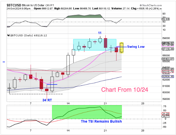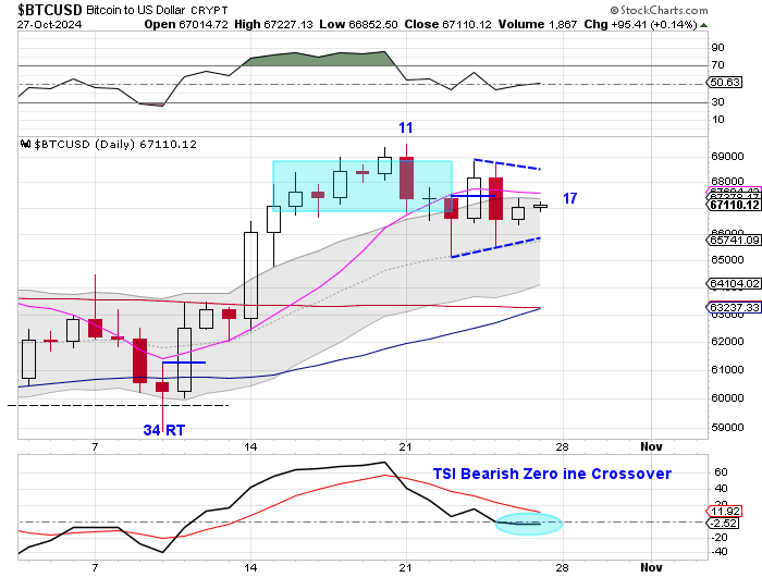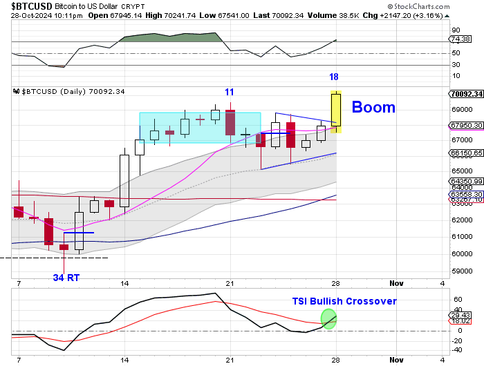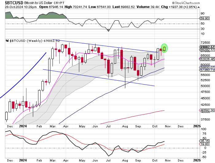 Bitcoin broke bullishly above the declining weekly trend line two weeks ago. And now appears to be delivering bullish follow through.