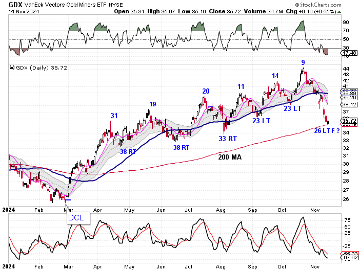 The Miners broke below their previous DCL last week to form a failed daily cycle and signal the intermediate cycle decline.