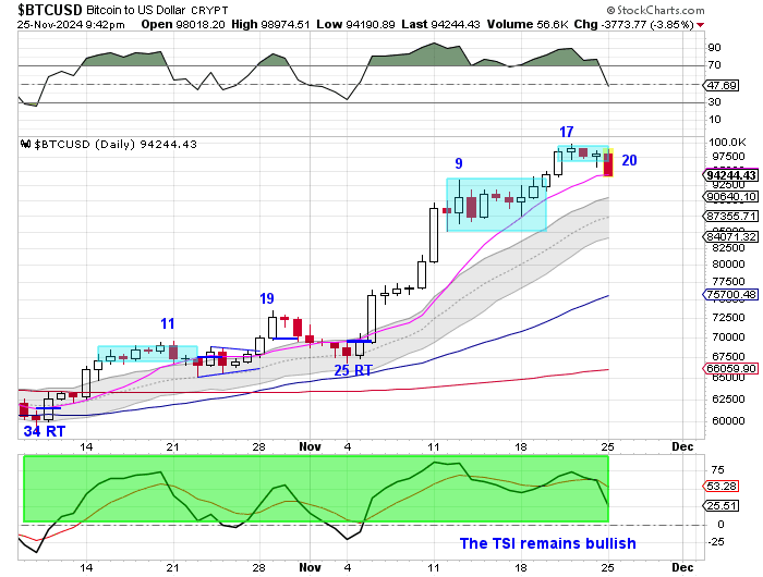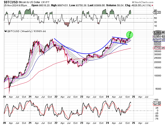 The big picture is Bitcoin continues to break bullishly out of a multi-year cup and handle pattern. Our expectation is pullbacks will be met by bull demand.