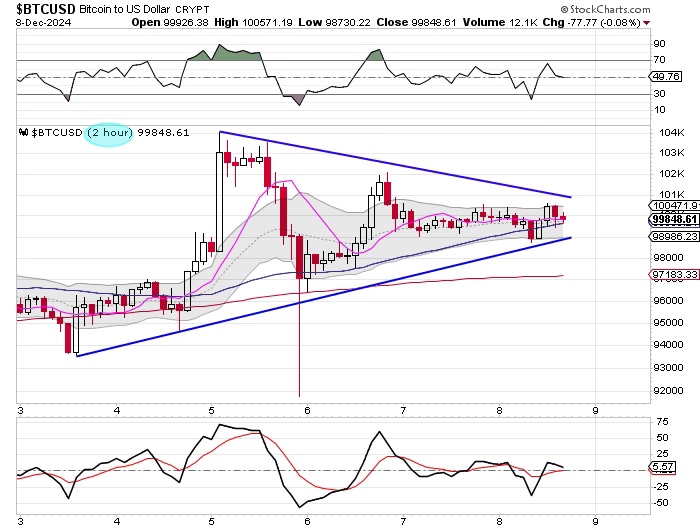 Of course, if you are like me — you could drill down to the 2 hour time frame. Here, we see that the consolidation morphed into a triangle consolidation. A breakout on the 2 hour chart could give us an early read for the longer timeframe.