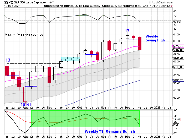 This is week 19, placing stocks in the early part of its timing band for an ICL. A close below the 10 week MA will signal the intermediate cycle decline. Stock should then go on to turn the 10 week MA lower as it seeks out its ICL. In the Weekend Report I plan to to a deeper dive on the intermediate cycle decline and also discuss what this means for the longer term, yearly cycle decline.