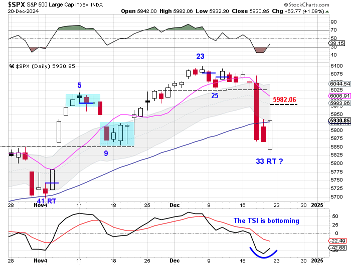 That was because after Wednesday’s huge sell-off, stocks were unable deliver any bearish follow through. Instead stocks rallied on Friday, closing back above the 50 day MA to make it look like Friday was the daily cycle low — kicking the (correction) can down the road.