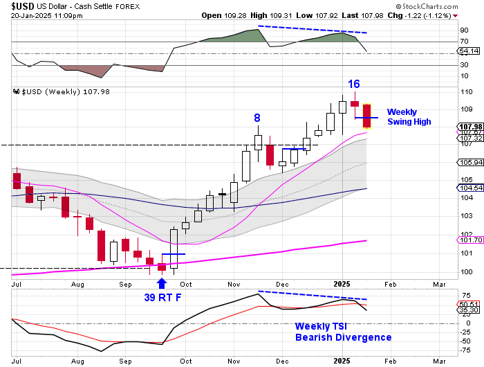 A quick look at the weekly chart shows us that the dollar has already formed a weekly swing high.