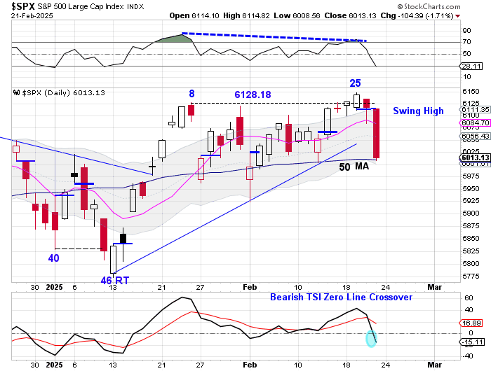 Friday was day 27, placing stocks in their timing band for a DCL. Stocks closed below the 10 day MA on Friday and managed to turn it lower. However, stocks also found support at the 50 day MA on Friday.