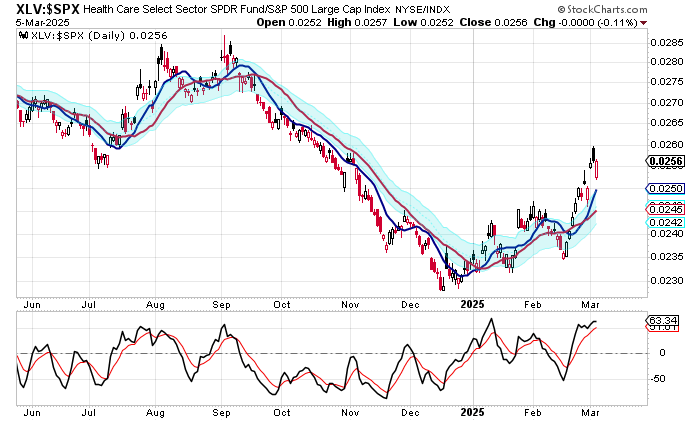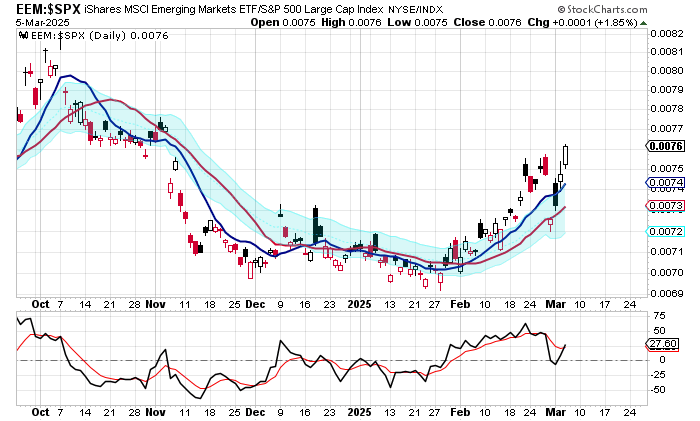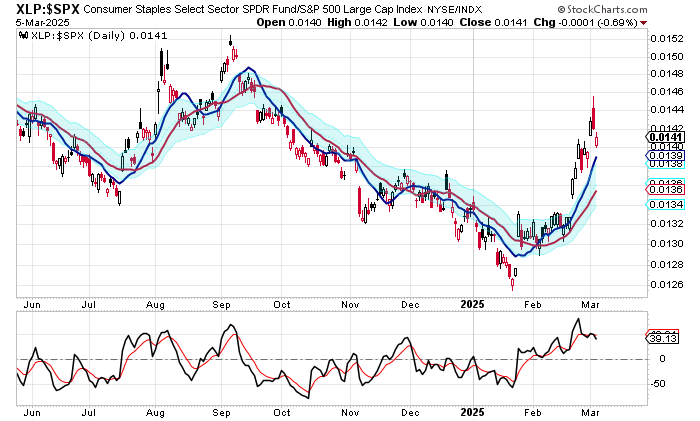Both Emerging Markets and Consumer Staples have been out performing the S & P since early February.