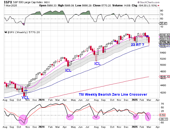 The failed daily cycle signals the intermediate cycle decline. The question is, was week 23 the intermediate cycle low and this is week 7 of a new intermediate cycle — or — is this week 30 on an extended intermediate cycle.
