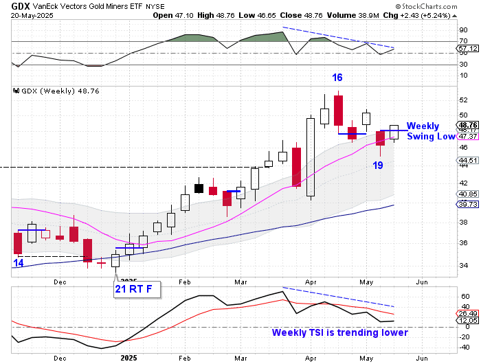 The Miners closed above the 10 day MA on Tuesday to confirm the new daily cycle. So today I want to discuss the intermediate cycle.