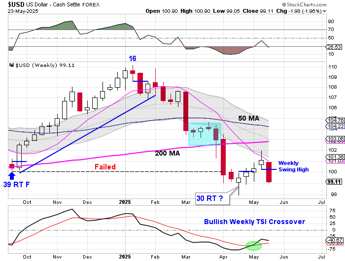 The Weekend Report discusses Dollar, Stocks, Gold, Miners, Oil, & Bonds in terms of daily, weekly and yearly cycles.