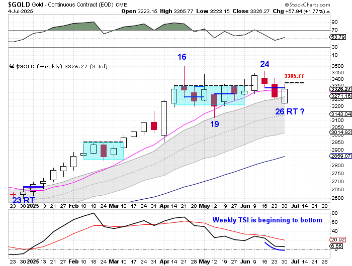 Gold is in a weekly uptrend and at 26 weeks — is in its timing band for an ICL.