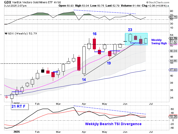 The Miners are in a weekly uptrend and at 26 weeks — is in its timing band for an ICL.