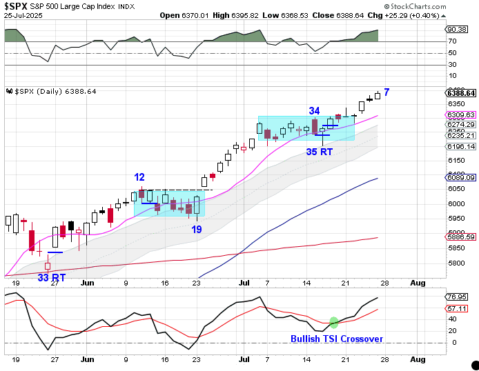 Stocks broke bullishly out of consolidation on Wednesday. Stocks continued higher Thursday and Friday. Stocks are stretched above the 10 day MA. Stocks may need to consolidate in order to allow the 10 day MA time to catch up to price. Stocks are currently in a daily uptrend. Stocks will remain in their daily uptrend unless they close below the lower daily cycle band.