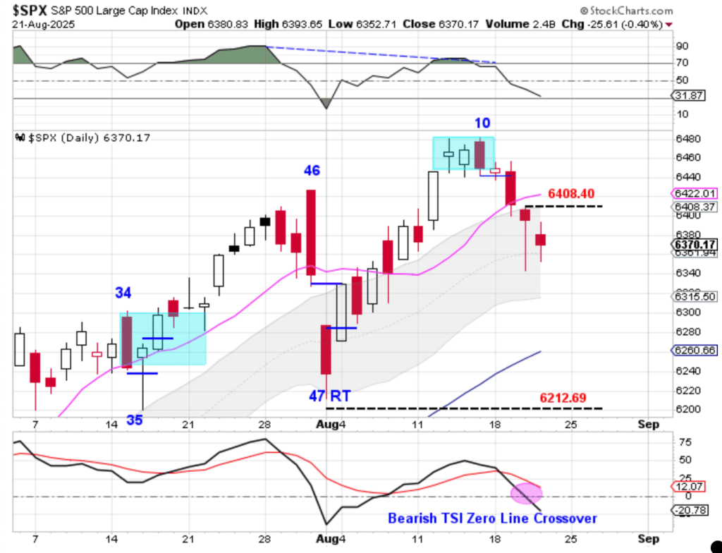 However, the current peak on day 10 sets up stocks for a possible left translated daily cycle formation. If stocks deliver bearish follow through and break below the previous DCL of 6212.69, that will form a failed daily cycle and confirm the intermediate cycle decline.