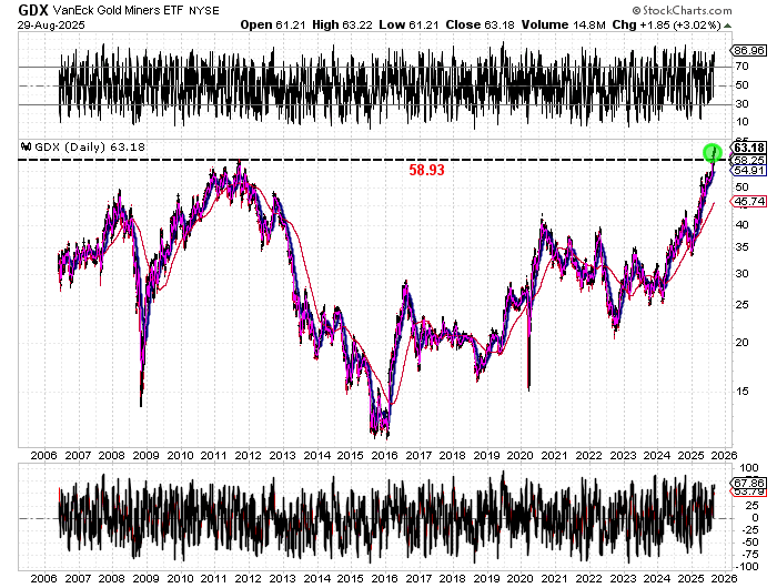 The Miners are breaking out to new highs.