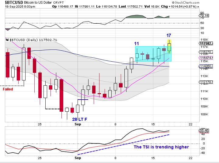 Bitcoin has since been consolidating below the 11700 level — until Thursday. Bitcoin is in the process of breaking out of consolidation on Thursday. Bitcoin is currently in a daily uptrend. Breaking bullishly out of consolidation indicates a continuation of its daily uptrend and signals a cycle band buy signal.
