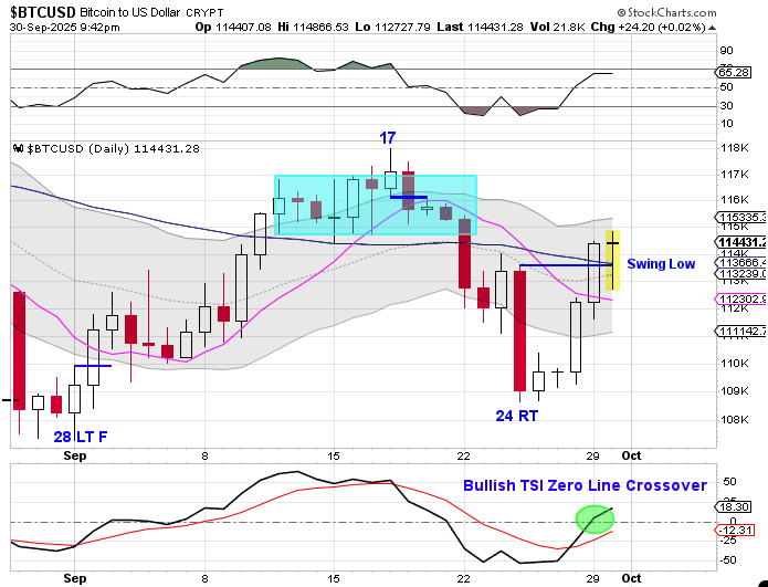 Bitcoin printed its lowest point on day 24, placing it in the early part of its timing band for a DCL. Bitcoin formed a swing low and closed above both the 10 day MA and the 50 day MA on Monday to signal the new daily cycle. BTC is currently in a daily downtrend. But a close above the upper daily cycle band will end the daily downtrend and begin a daily uptrend. A close above the upper daily cycle band will also indicate that the ICL has been set.