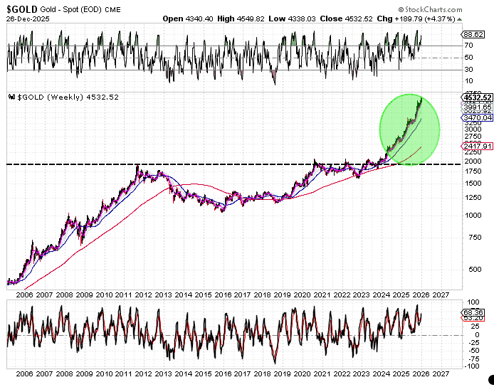 Gold and the Miners are currently stretched above their respective 10 day moving averages, 10 week moving averages, and 10 month moving averages, reflecting strong upside momentum across multiple timeframes. While stretched conditions can lead to short-term consolidation, they are also a hallmark of healthy, trending markets.