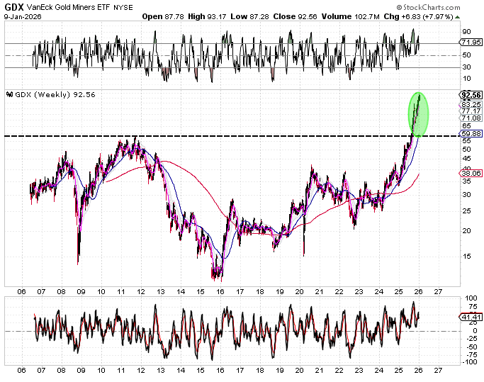 Gold, the Miners, and Silver will continue to hold their weekly uptrends unless they close below their lower weekly cycle bands. Until that occurs, pullbacks should still be viewed through the lens of corrections within broader uptrends — not confirmed trend changes.