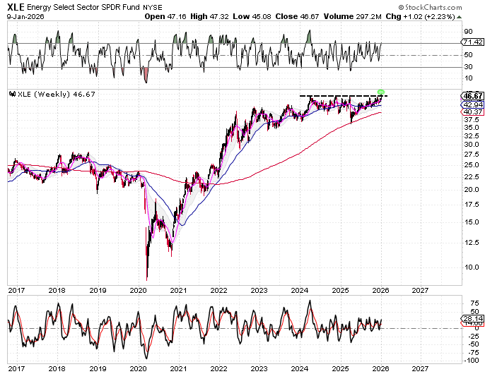 Energy has lagged the recent strength seen in metals, but if rotation continues within the commodity space, Energy may begin to attract attention as cycles evolve.