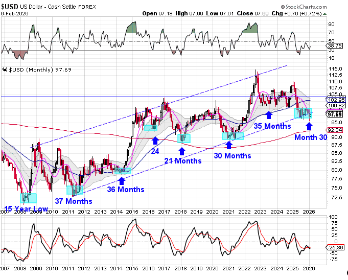 Subscribers are receiving detailed multi-timeframe cycle analysis on the Dollar, Stocks, Gold, Miners, Oil, and Bonds — including the specific daily, weekly, and monthly signals that will confirm which scenario is unfolding.