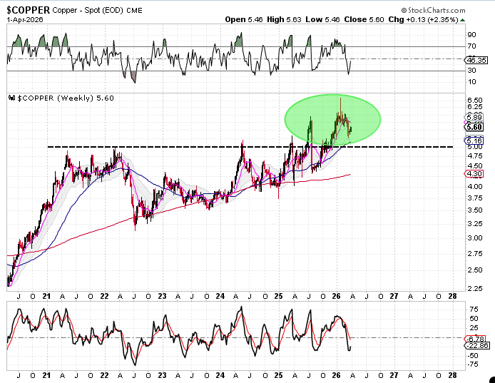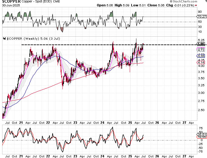 Copper followed a similar path, breaking out of a multi-year base and advancing 20% before entering an intermediate cycle decline.