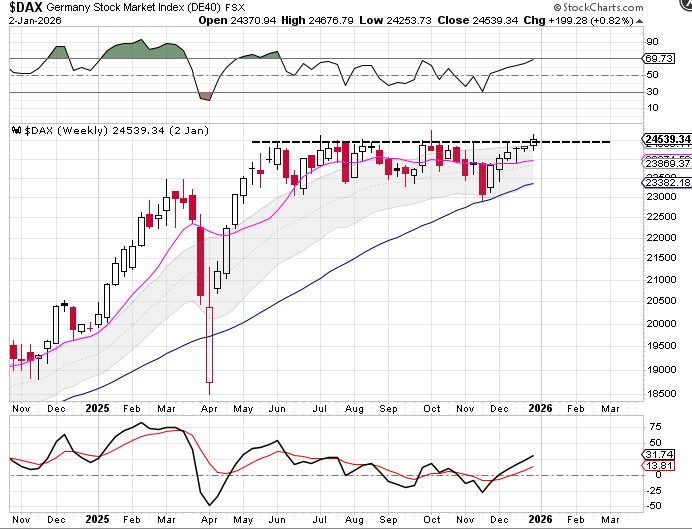 Even shorter structures follow the same pattern. The DAX consolidated for 8 months before breaking out. While the move was more limited at 4%, it still followed the same sequence — consolidation, breakout, then cycle decline.